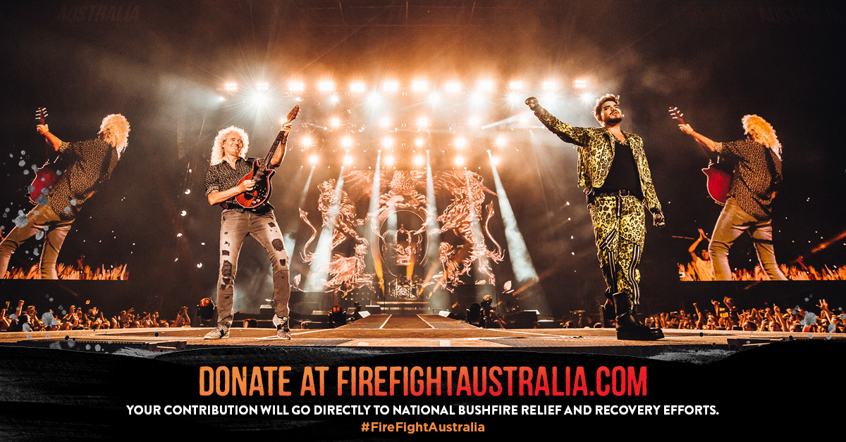 Watch: Queen + Adam Lambert 'WWRY' and 'Champions'- Fire Fight Australia
