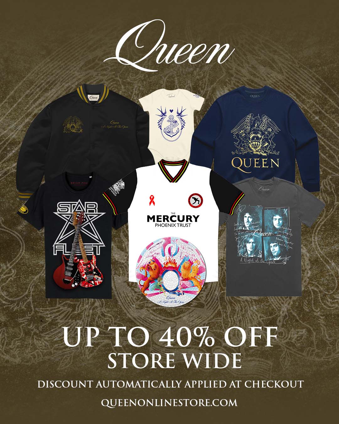 Includes Queen, Brian May, Taylored of London and Mercury Phoenix Trust ranges - hundreds of items to choose from!