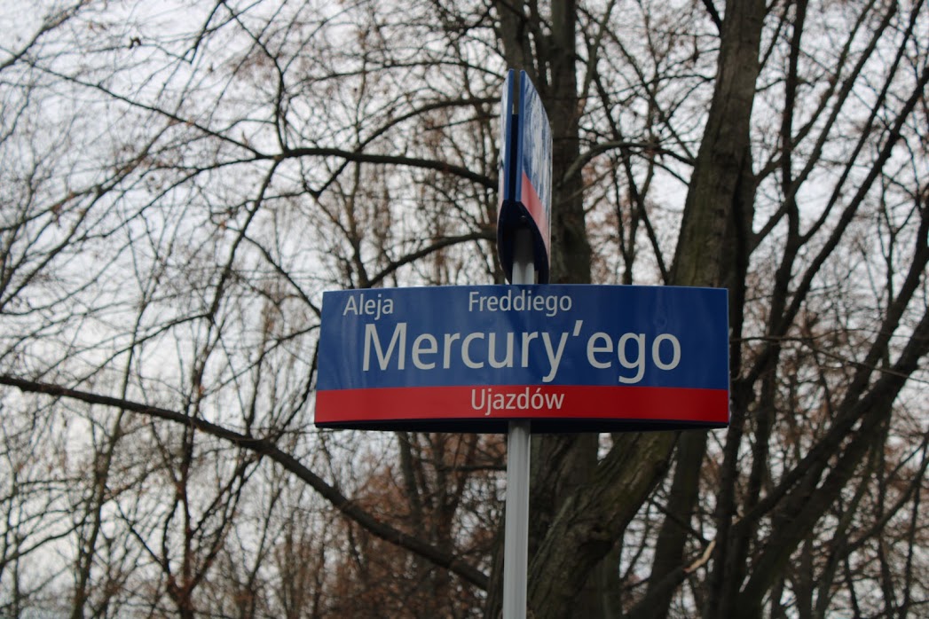 Freddie fue objeto de una develación de placa de nomenclatura de calle en Varsovia, Polonia, el viernes pasado, y el Fan Club de Queen en Polonia estuvo ahí para presenciar la ceremonia, junto con el embajador oficial de la ciudad y varios consejeros. El callejón, que se encuentra cerca del sendero de un pequeño parque, es el primero en llevar el nombre de Freddie en una ciudad capital.